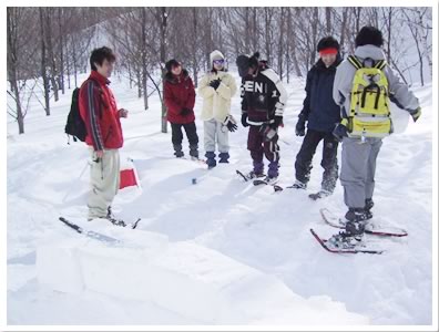 設置場所まではスノーシューを履いていくよ。現代版わらじは、かっこいいでしょ♪でっかいスリッパを履いている感じだよ。